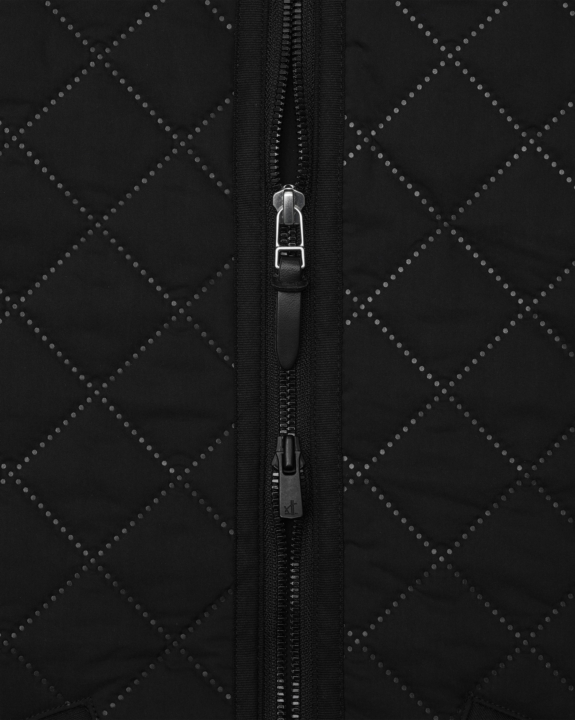 The distinctive quilting is created using pinsonic bonding—a heat-fusion process that connects the fabrics without stitching.