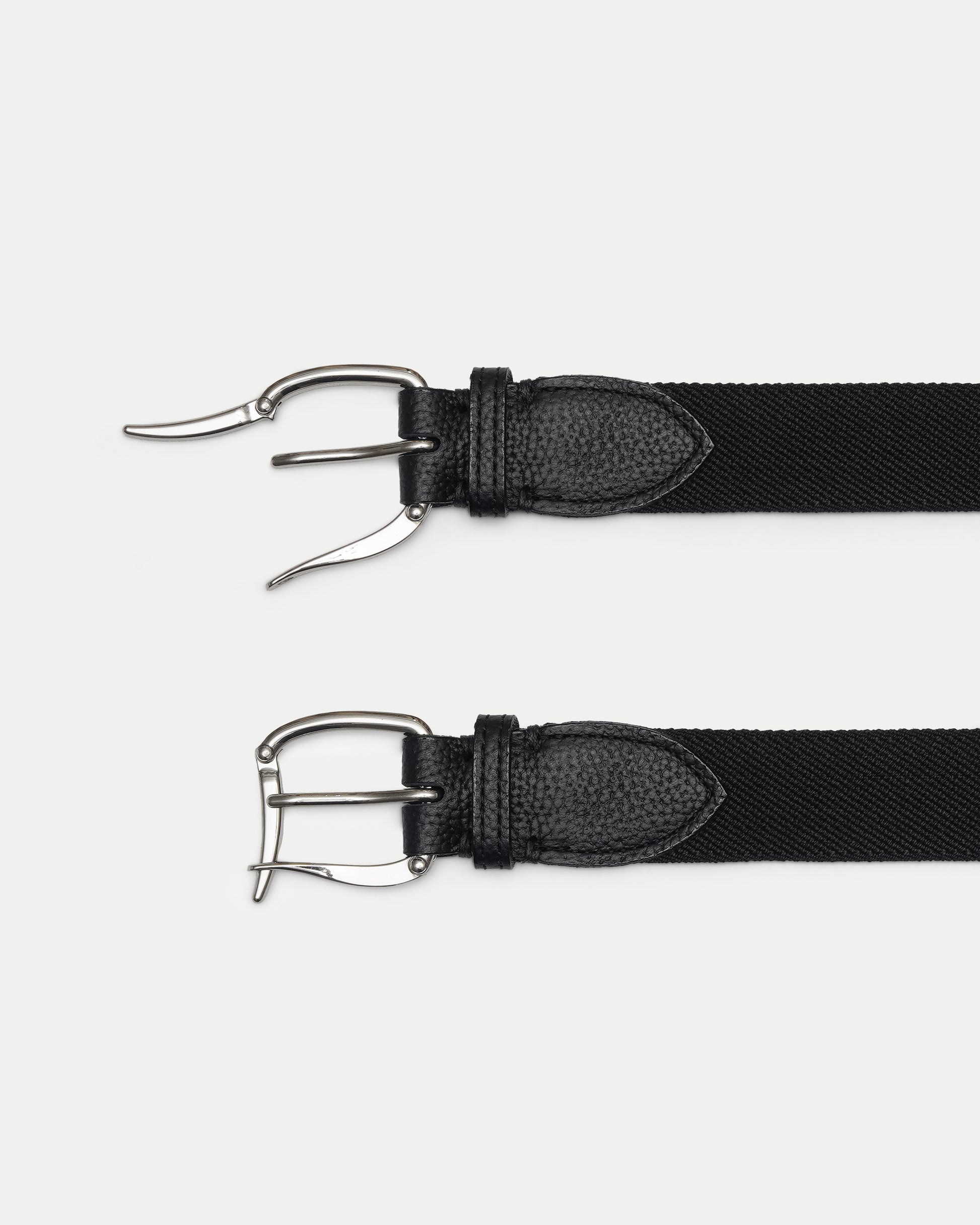 The front features cowhide leather crafted by a tanner in Himeji. The sides use high-density flat rubber developed in Belgium for suspenders. The look is refined, the feel stress-free.