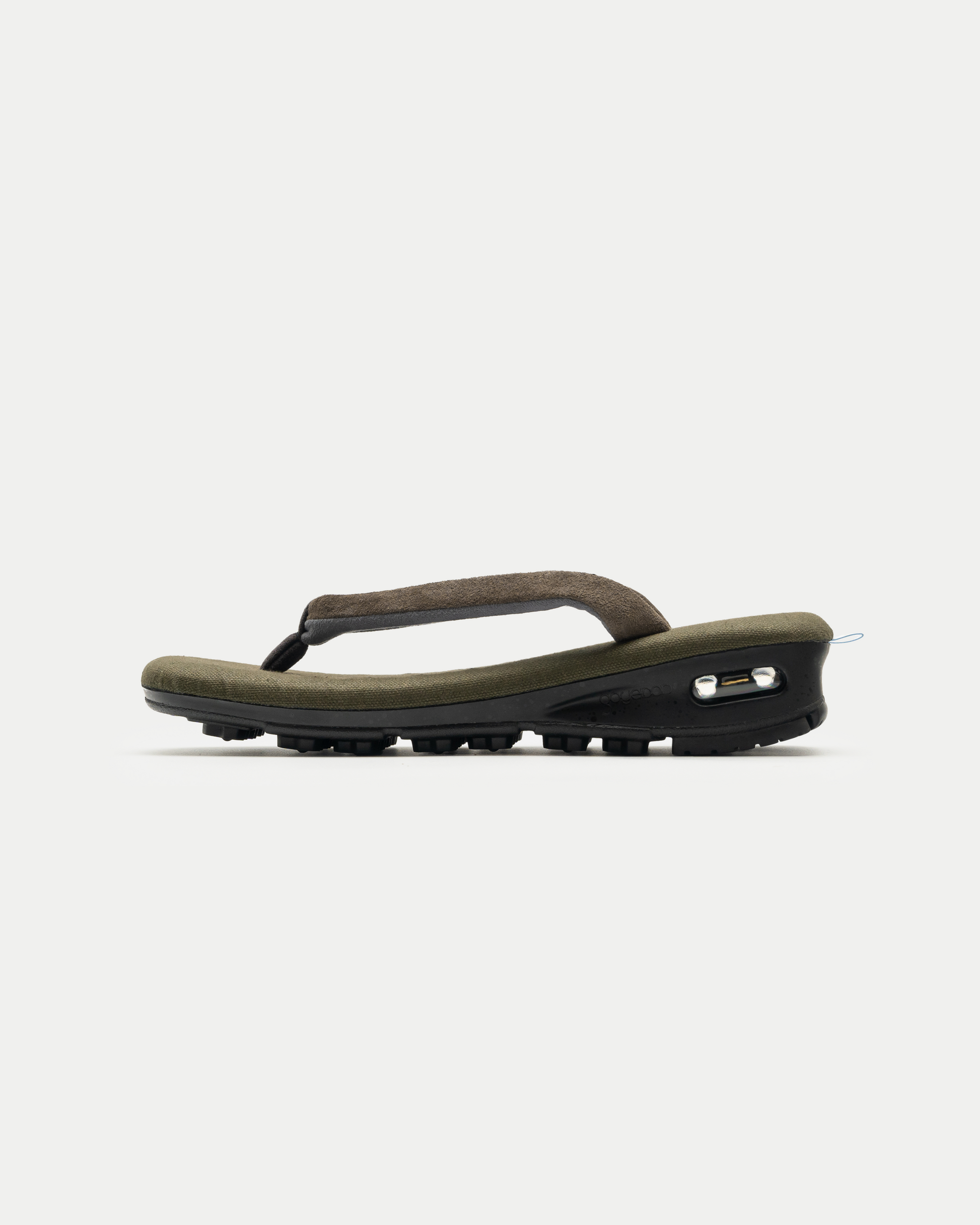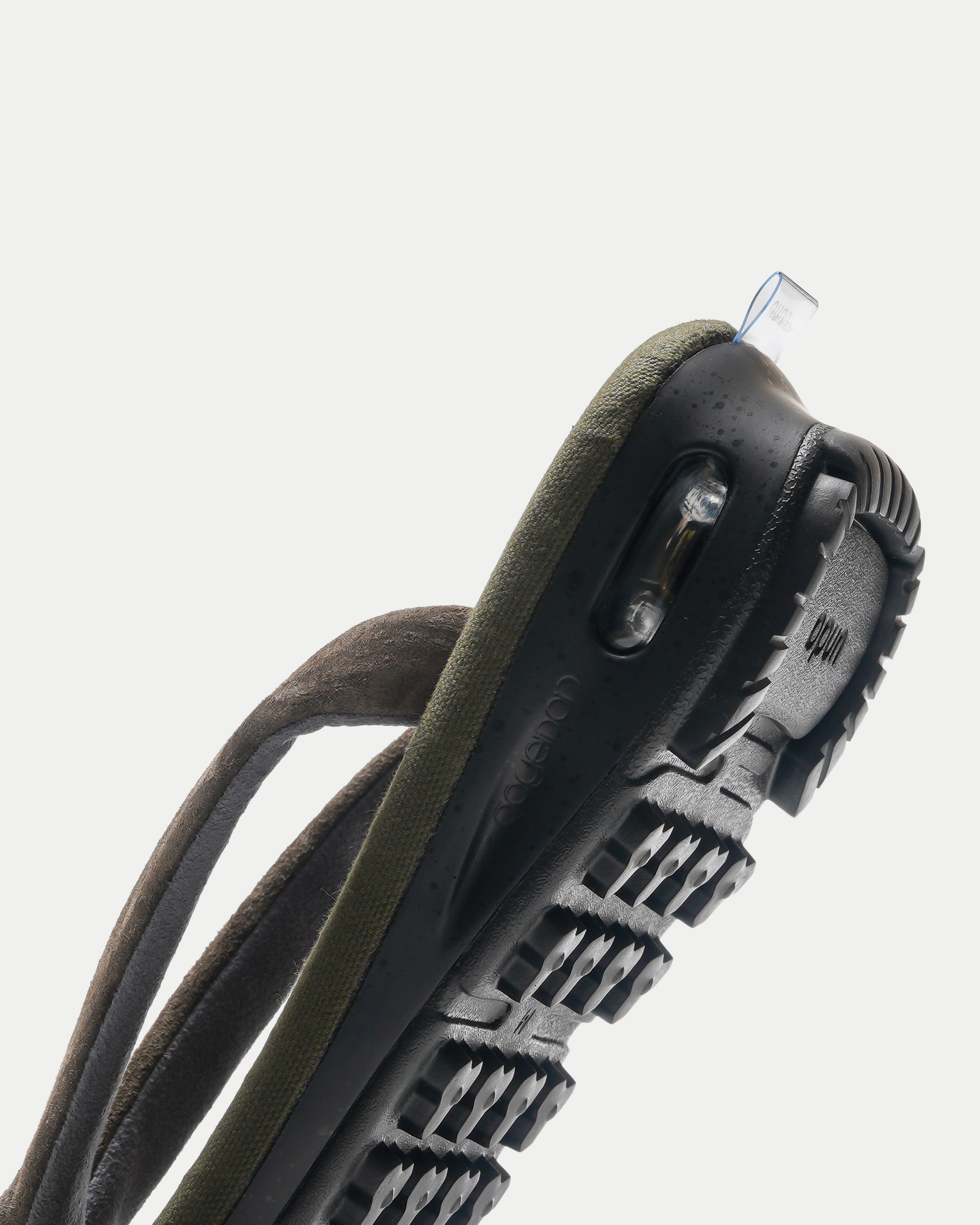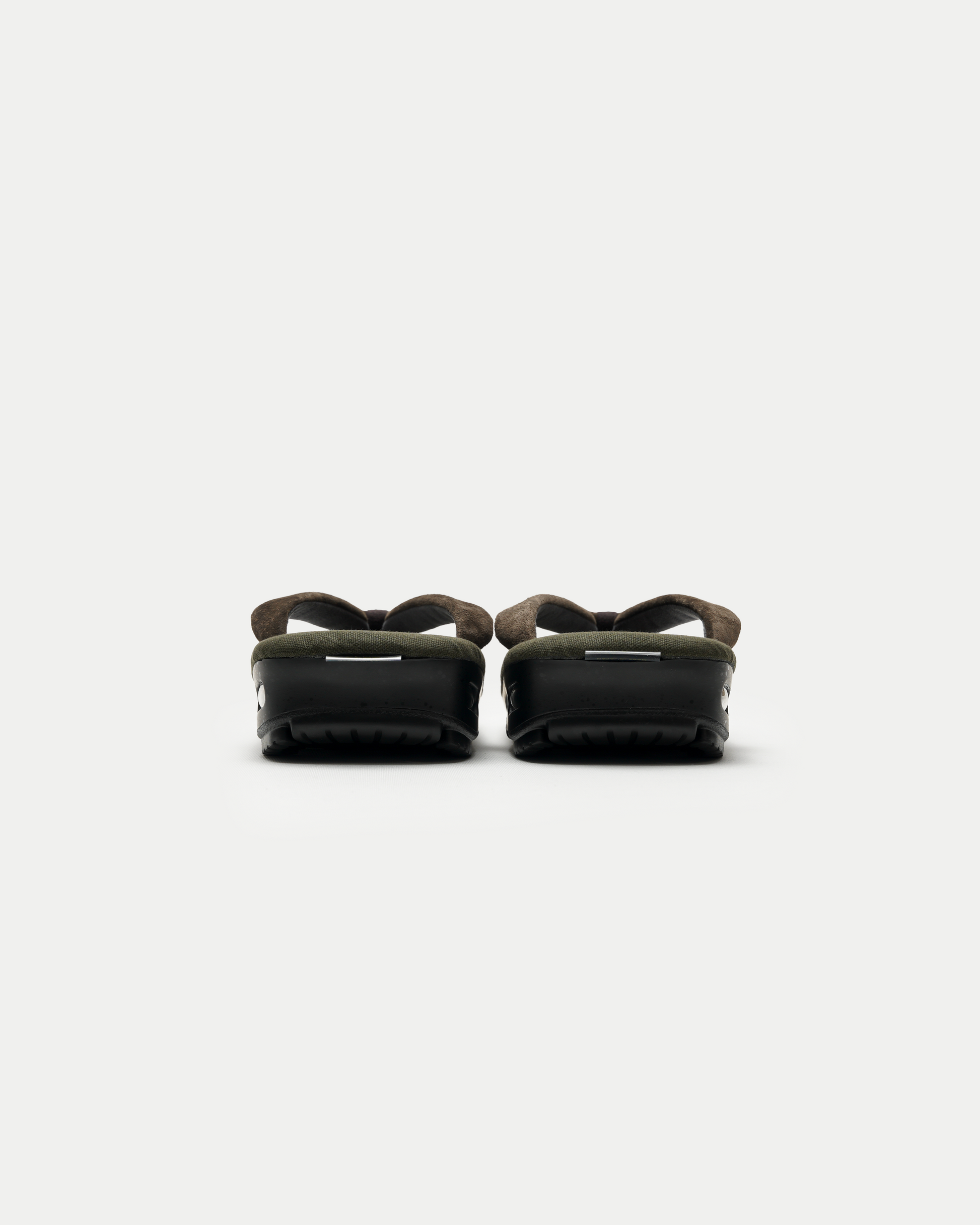 Invented in the 16th century, the setta is meant to be worn under poor weather conditions. Attached to the sole of the traditional footwear is a layer of leather which helps to keep the feet away from puddles and snow. Dubbed “Unda,” the modernized version features cushioned footbeds and midsole bubble units serving to buffer the strain from walking while logo-appliqued tags detail the heels.