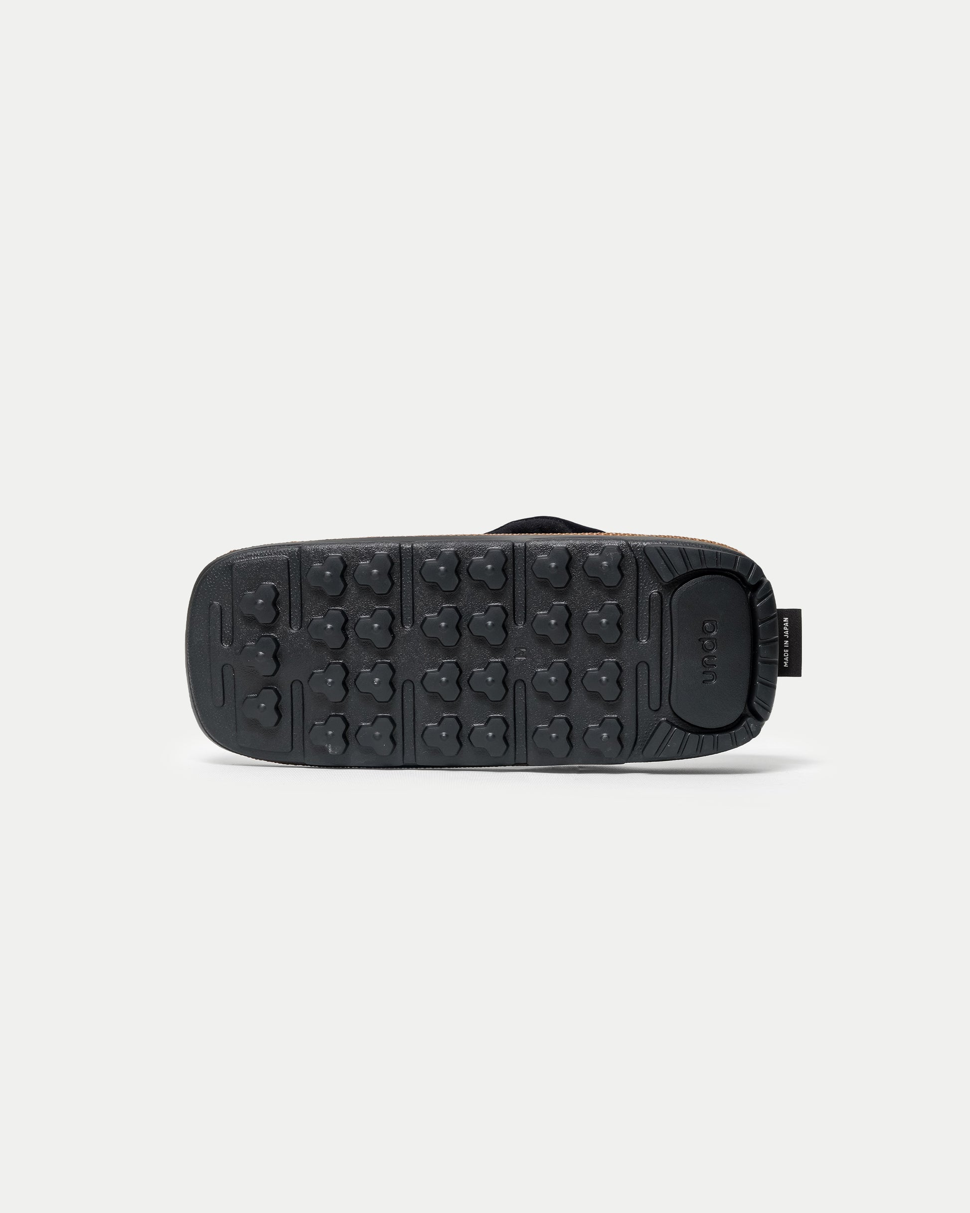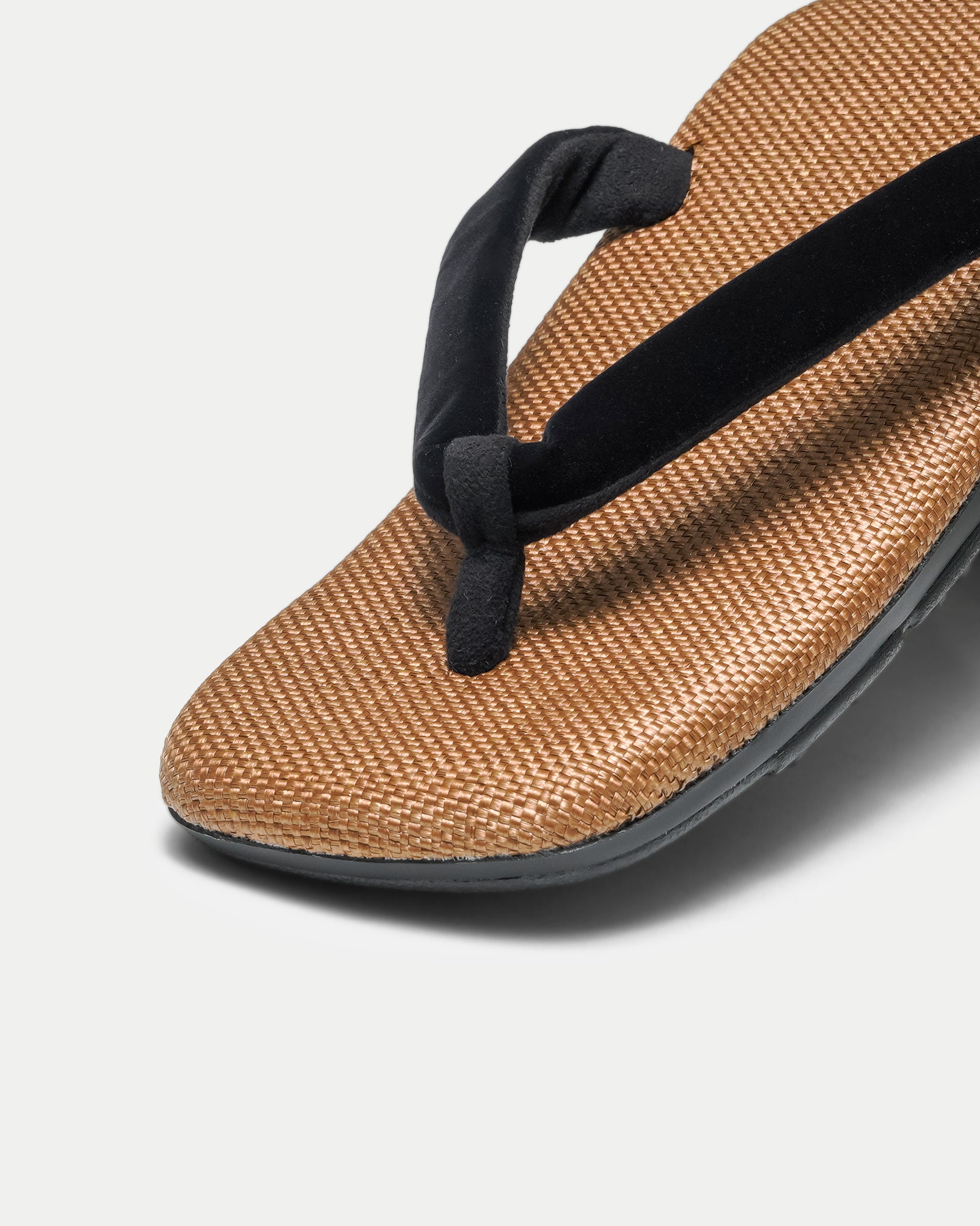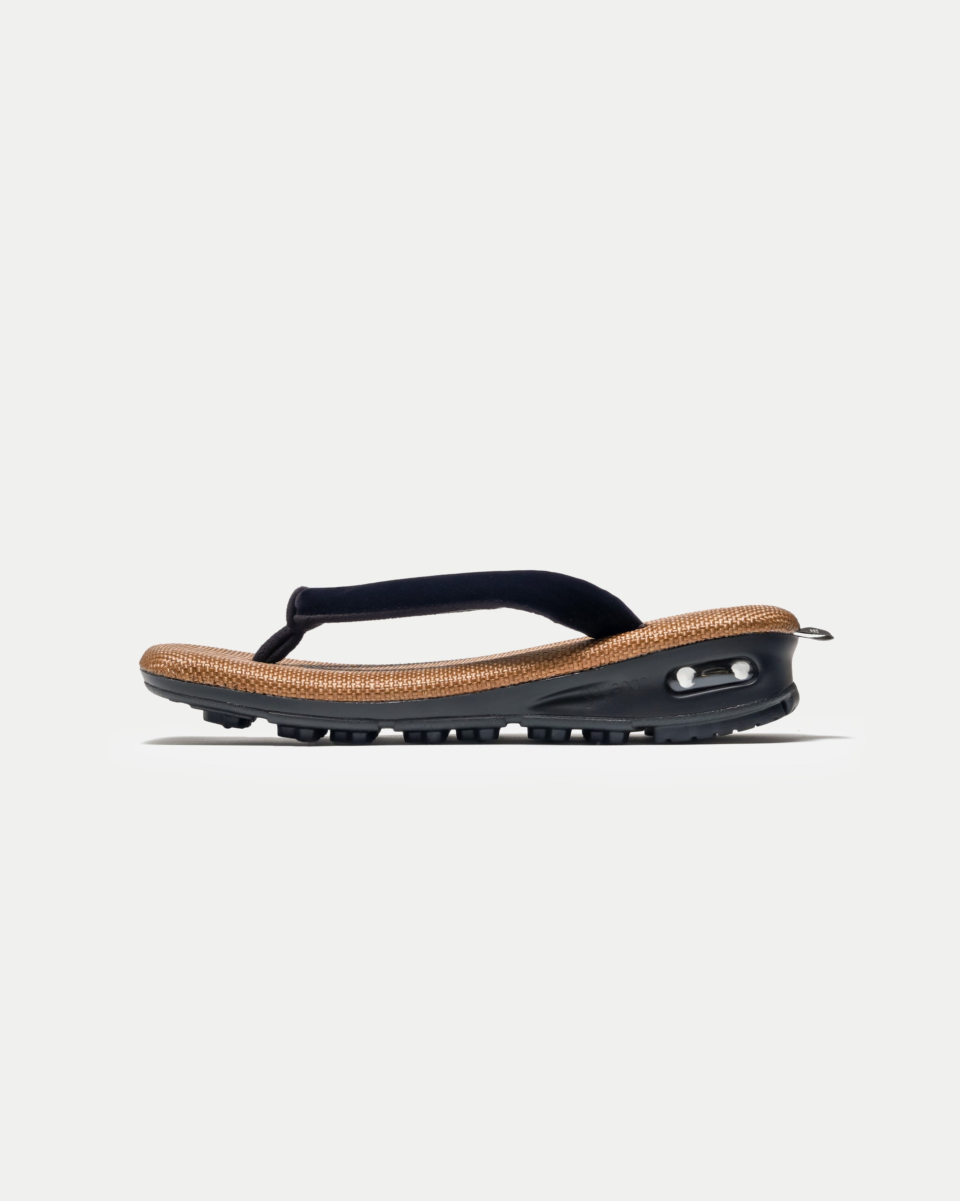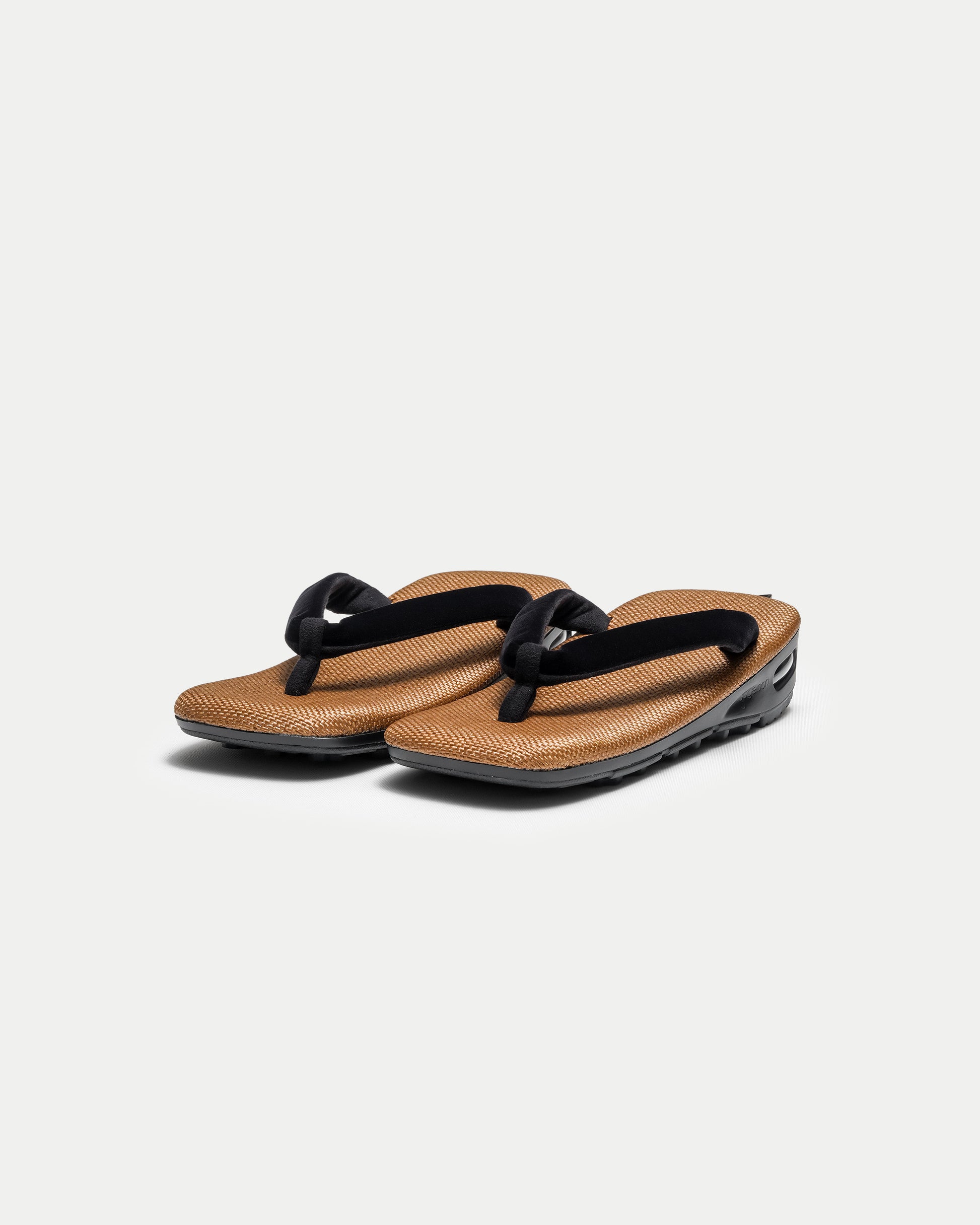 The footbed features a reddish brown reminiscent of hojicha roasted tea, paired with an all-black sole unified in deep black.